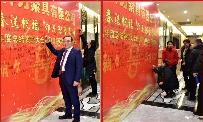 年會開始前,參會嘉賓陸續(xù)到場,并在書寫著“只爭朝夕 不負韶華”的年會主題簽名墻前進行簽名并留影紀念。