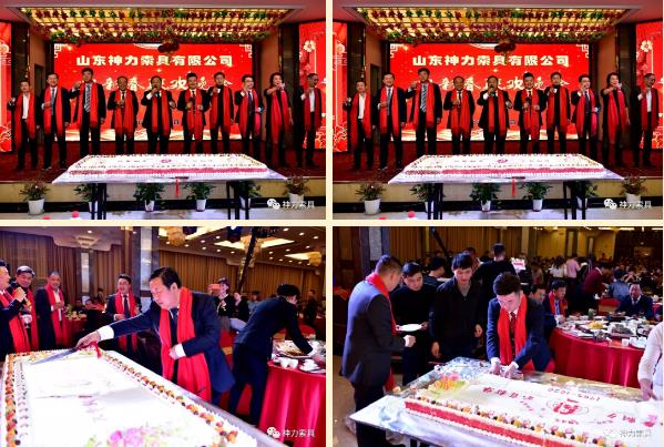 在熱烈地掌聲中,公司領導上臺致新春賀辭,感謝大家的辛勤付出和不懈努力,也希望大家再接再厲再創(chuàng)輝煌 。然后,公司董事長杜亞中先生親自切開神力索具成立55周年“不負韶華 只爭朝夕”的蛋糕,并由公司總經理杜大平先生親自分發(fā)!神力一家親,同甘共苦,如是而已!