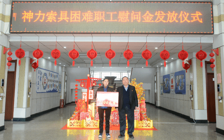 值此2024年春節(jié)來臨之際,在神力索具董事長(zhǎng)杜亞中、總經(jīng)理杜大平授意下,公司工會(huì)在全公司范圍內(nèi)組織發(fā)布了困難職工摸排工作,共確定15名因本人或近親屬大病等原因致困的職工。公司根據(jù)實(shí)際情況為其發(fā)放2000元、1000元的愛心救濟(jì)金,本次共計(jì)發(fā)放救濟(jì)金17000元。困難職工紛紛表示:感恩公司、感謝董事長(zhǎng)和總經(jīng)理給予我們的幫助,我們一定認(rèn)真工作以實(shí)際行動(dòng)來回報(bào)公司。